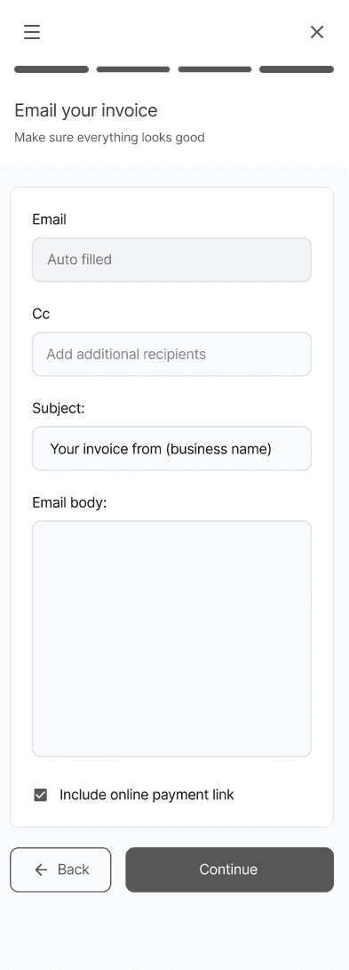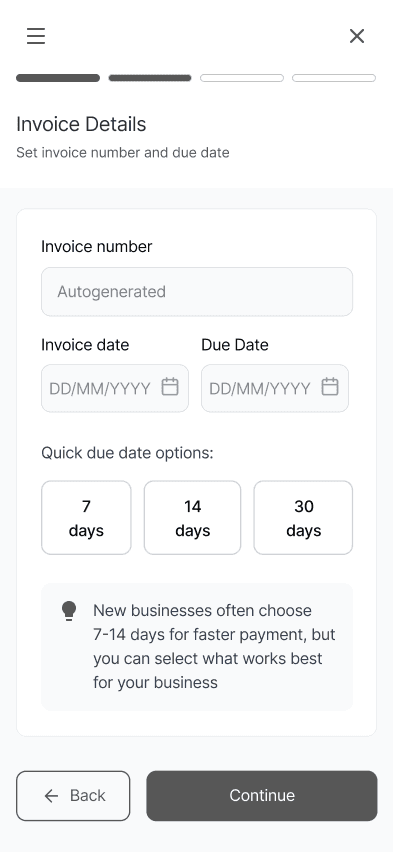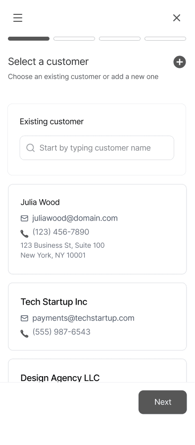Another advantage was that, because invoice creation is already a long-form task, reducing an extra step helped keep the experience intuitive and manageable. This reduced the workflow from five steps to four and kept invoice creation focused on transaction-specific inputs.