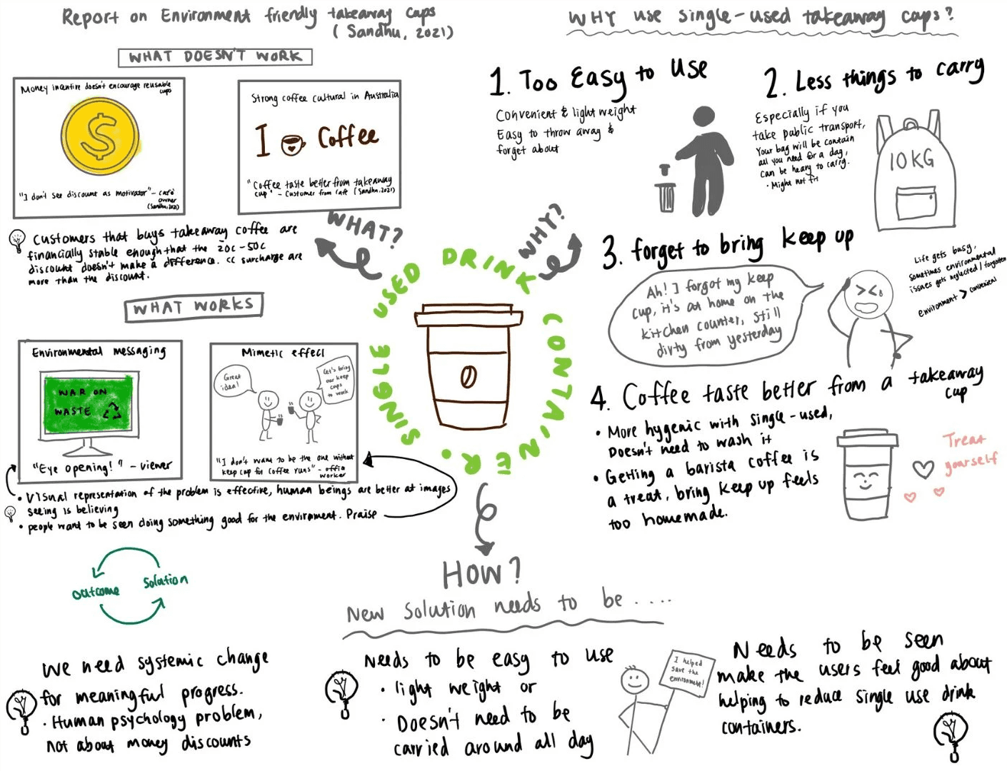 Small discounts for reusable cups were shown to have no impact on daily decisions — a finding supported by both academic research (Sandhu et al., 2021) and UN sustainability frameworks.