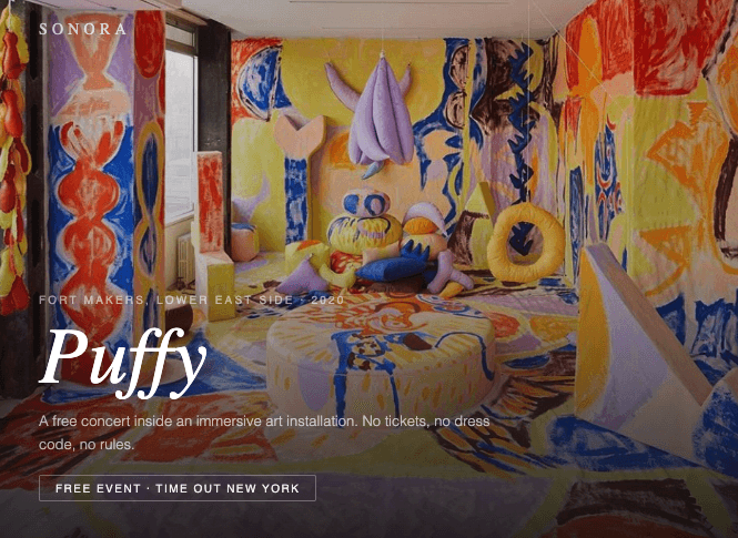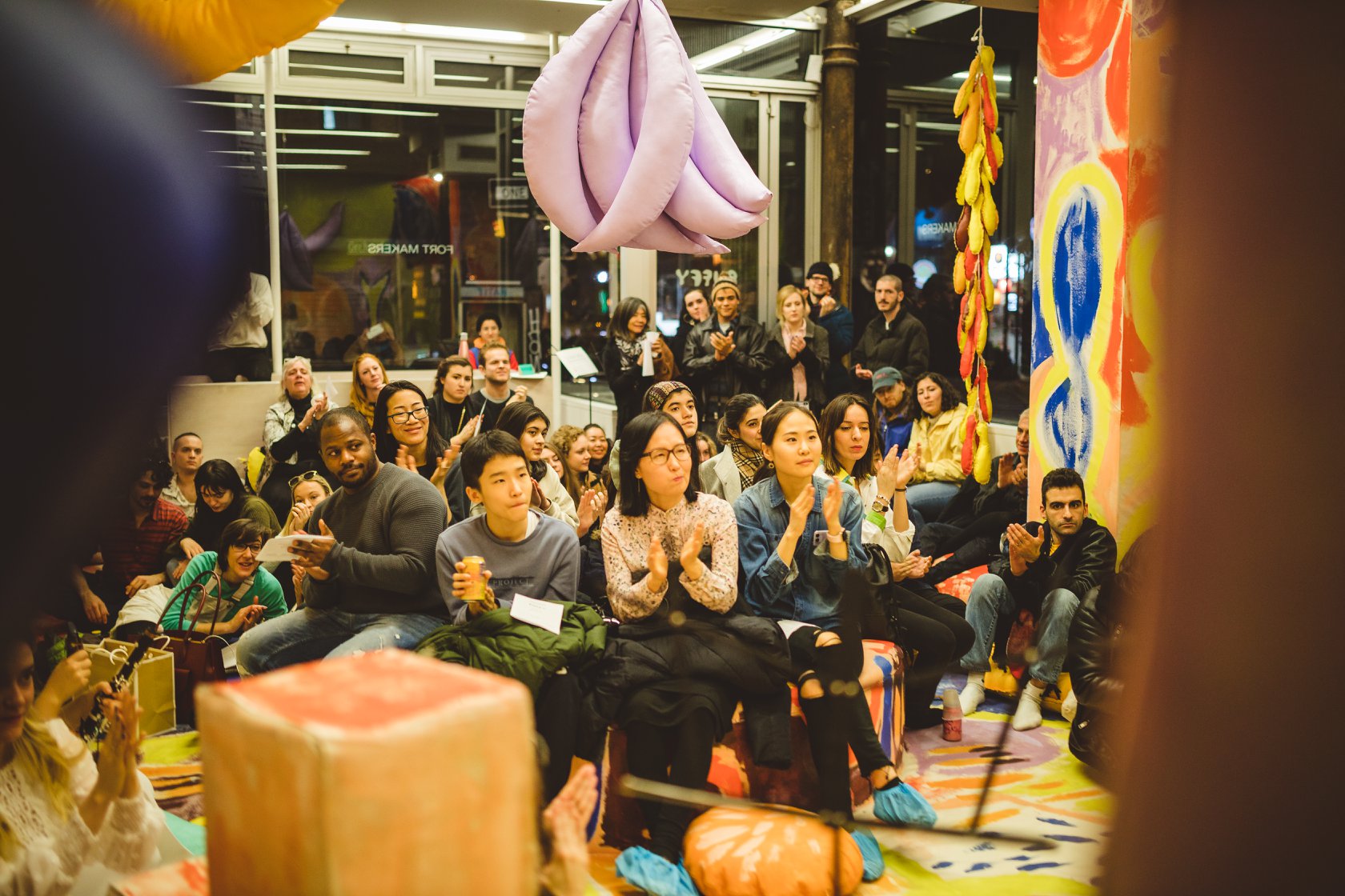 When Fort Makers transformed their gallery on Orchard Street into Puffy, an immersive installation of soft sculpture, painted canvas, and colour you could touch, we saw an opportunity. Why not take it up another notch? Let's add some live music. For this installation, visitors traded shoes for slippers at the door and get to be part of the art. We thought it was the perfect place for an immersive art experience.