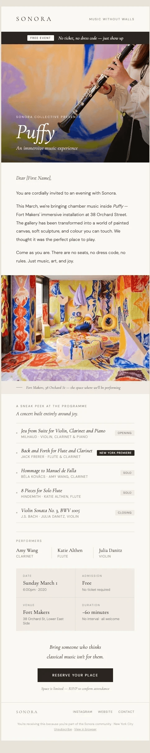 Below is the invite email designed and distributed ahead of Puffy.
