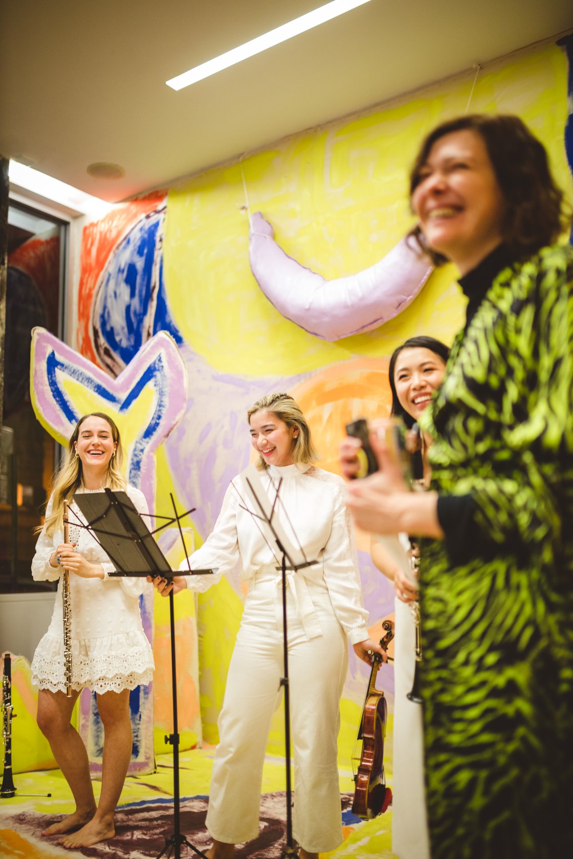A free neighbourhood concert built entirely around joy. We put together a programme of music that genuinely made us happy, inspired by the PUFFY exhibition. Along side a program of Milhaud, Bach, Hindemith, we performed a world premiere of Back and Forth for flute and clarinet, written by Juilliard composer Jack Frerer. The two performers stood at opposite ends of the gallery, literally playing back and forth across the space with the audience sitting between them. The encore was a Beatles arrangement.